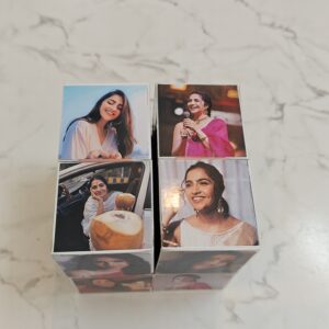 Unique infinity photo display featuring 48 memories across solid 3D printed cubes.