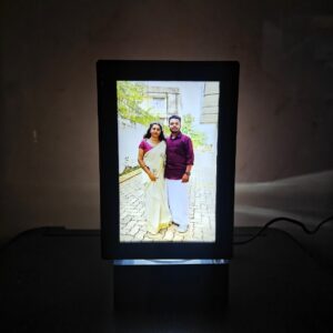 Stylish rotating photo décor featuring 5 personalised photos.