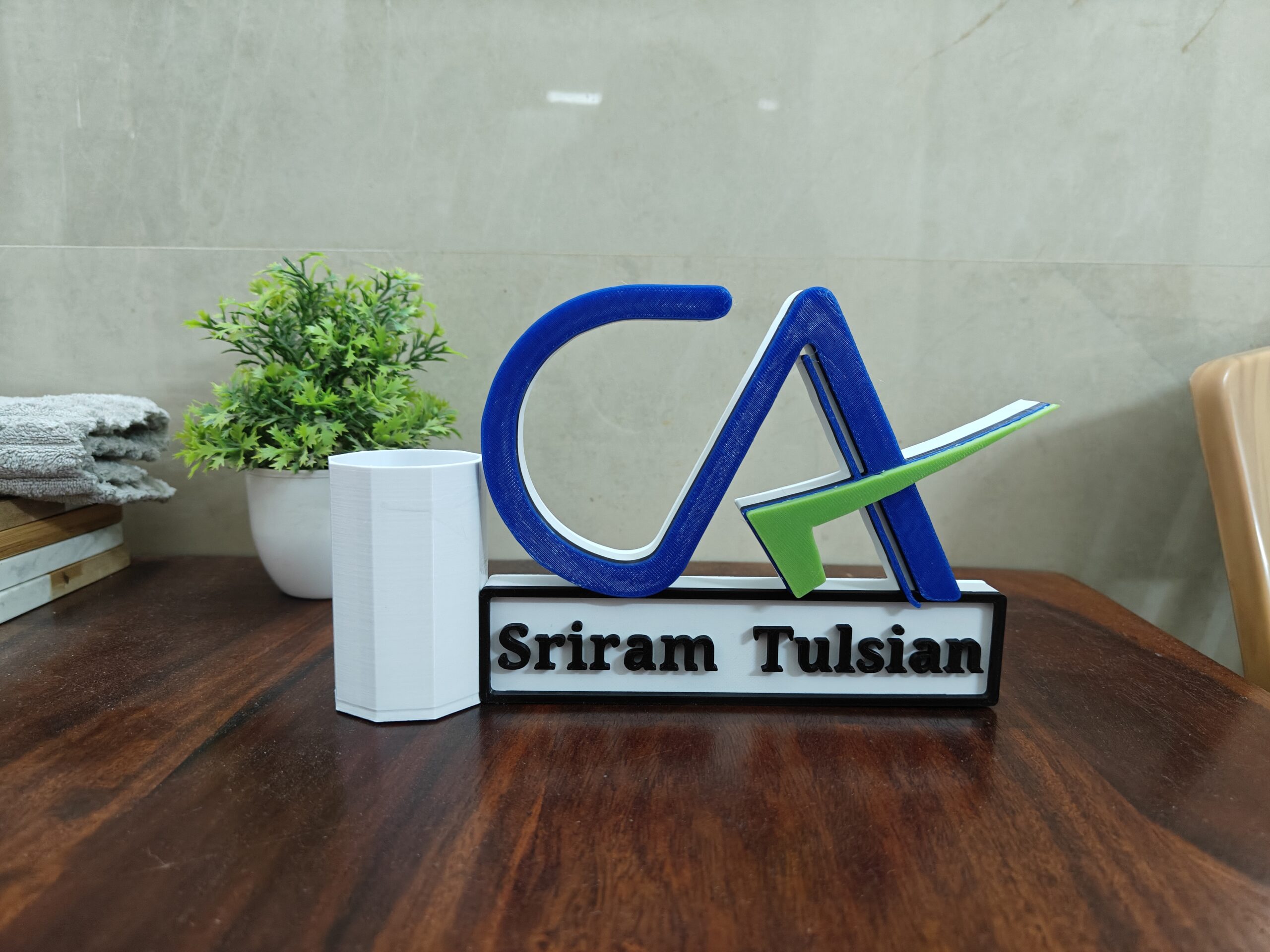 Professional and stylish desk accessory customised with your name and “CA” title. Comes with a built-in pen holder to keep your desk neat and organised.