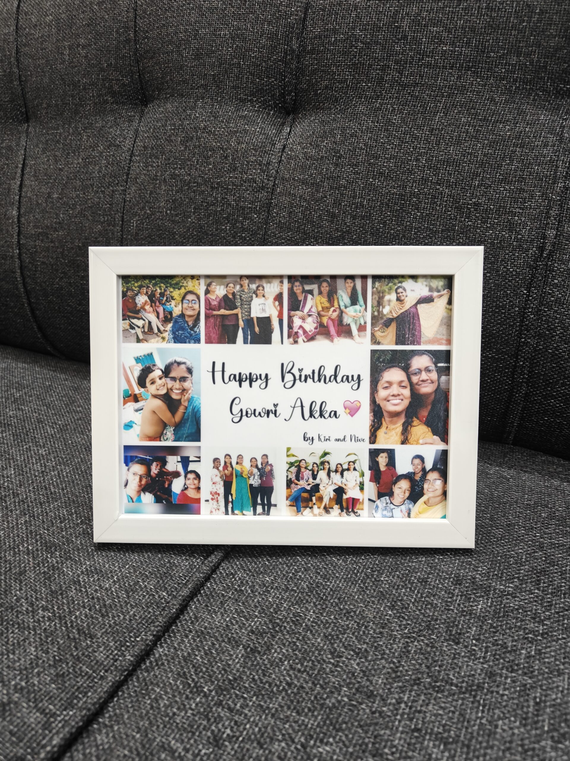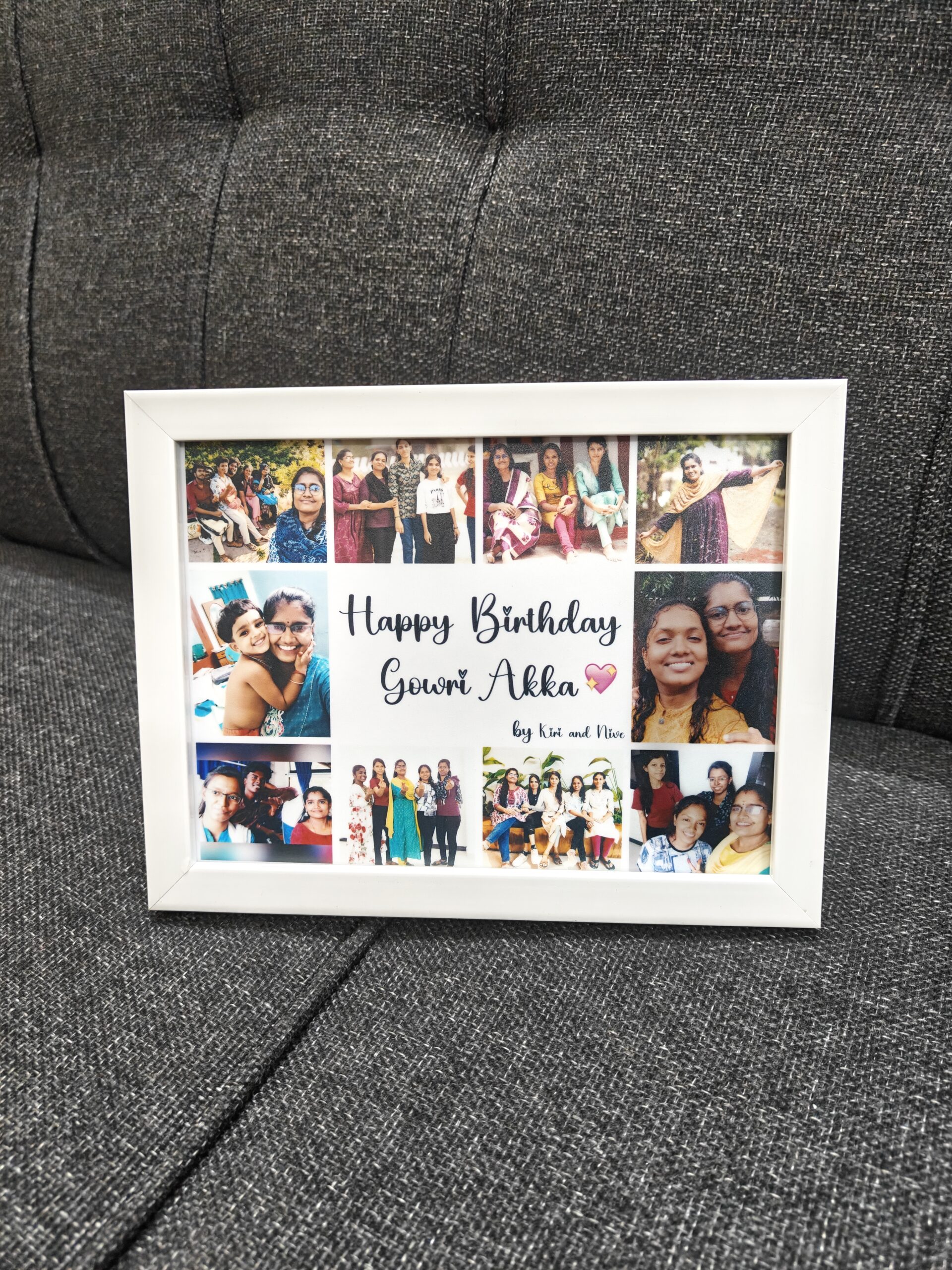 Cherish multiple memories in one beautiful display with our Collage Frame, designed to hold 10 photos and personalized with your chosen text. Crafted in a compact 8 × 6 inch size with high-quality materials and a sleek finish, it’s perfect for desks, shelves, or bedside tables. Ideal for gifting on birthdays, anniversaries, or special occasions, this frame is a creative and heartfelt way to showcase your favorite moments together. 🖼️✨📸