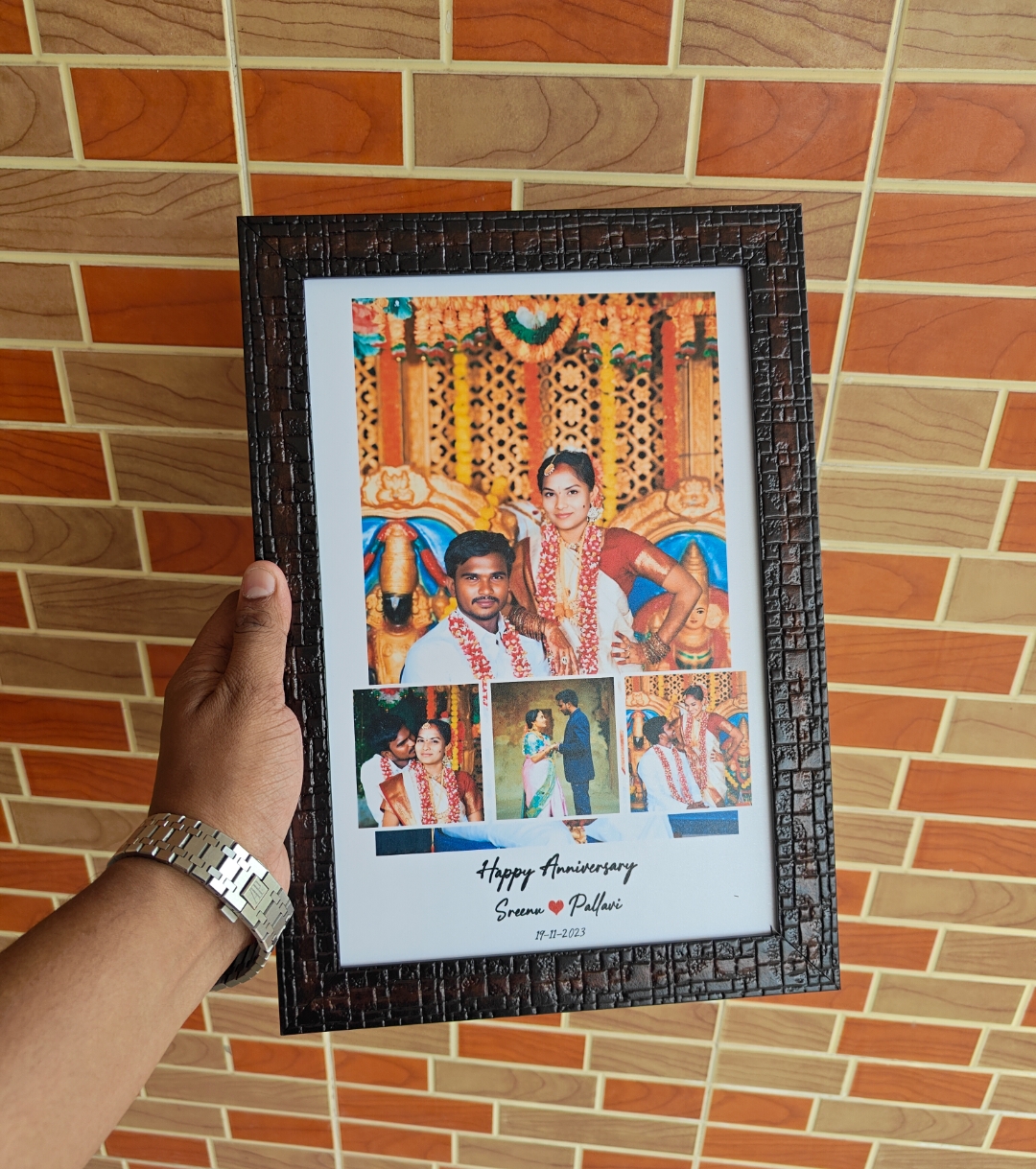 Beautiful collage frame featuring 1 big photo, 3 small photos, and custom text.