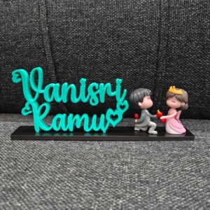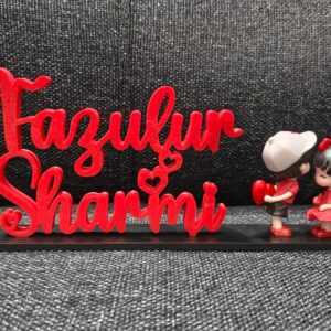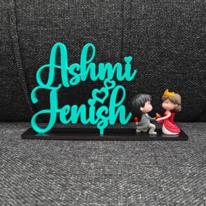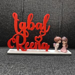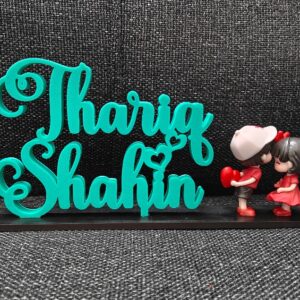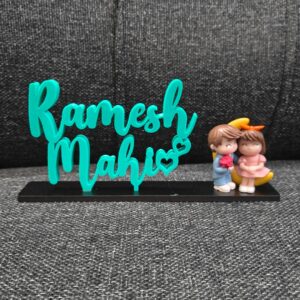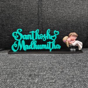 Celebrate love with our beautifully crafted 3D Printed Couple Name Stand, featuring a cute miniature couple doll. Personalized with couple names and designed using high-quality 3D printed material, this stand showcases fine detailing and a smooth finish. Perfect as a romantic décor piece for bedrooms, desks, or shelves, it makes an ideal gift for anniversaries, weddings, engagements, Valentine’s Day, or special surprises. A charming keepsake that turns your love story into a lasting memory. 💑✨