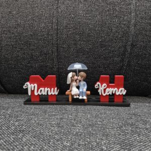 Make your love story stand out with this beautifully crafted 3D printed couple name stand. Designed with two large initials, two personalised names, and a cute couple doll placed at the center, this piece is perfect for celebrating special moments together.