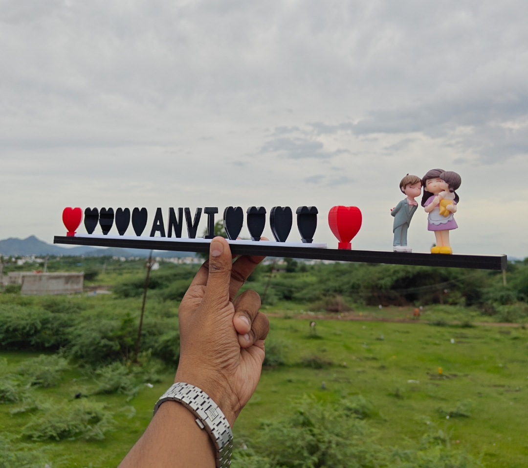 Unique 3D flip name design featuring all family members’ names along with a cute family doll.