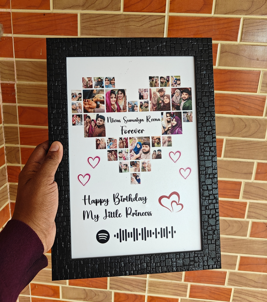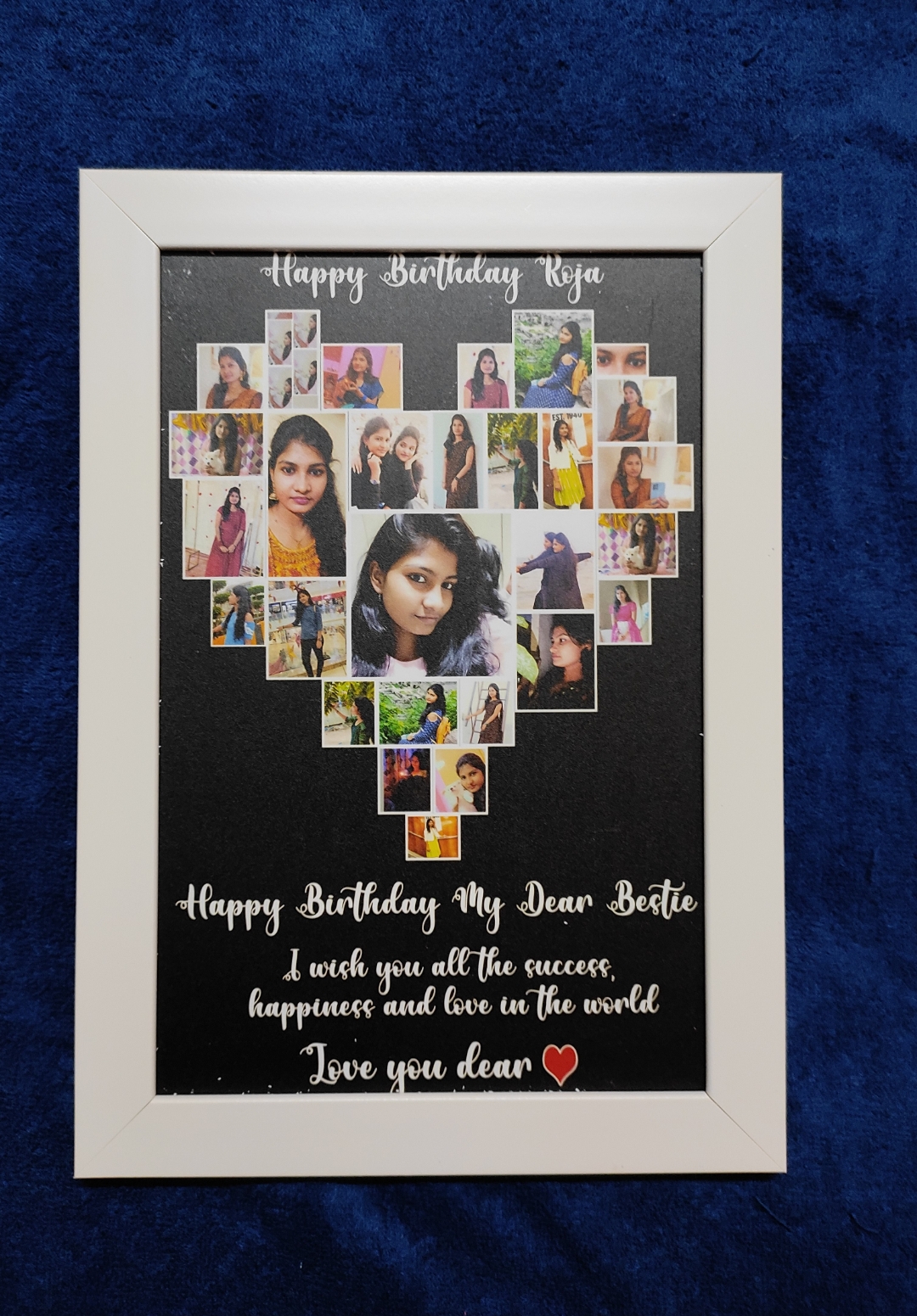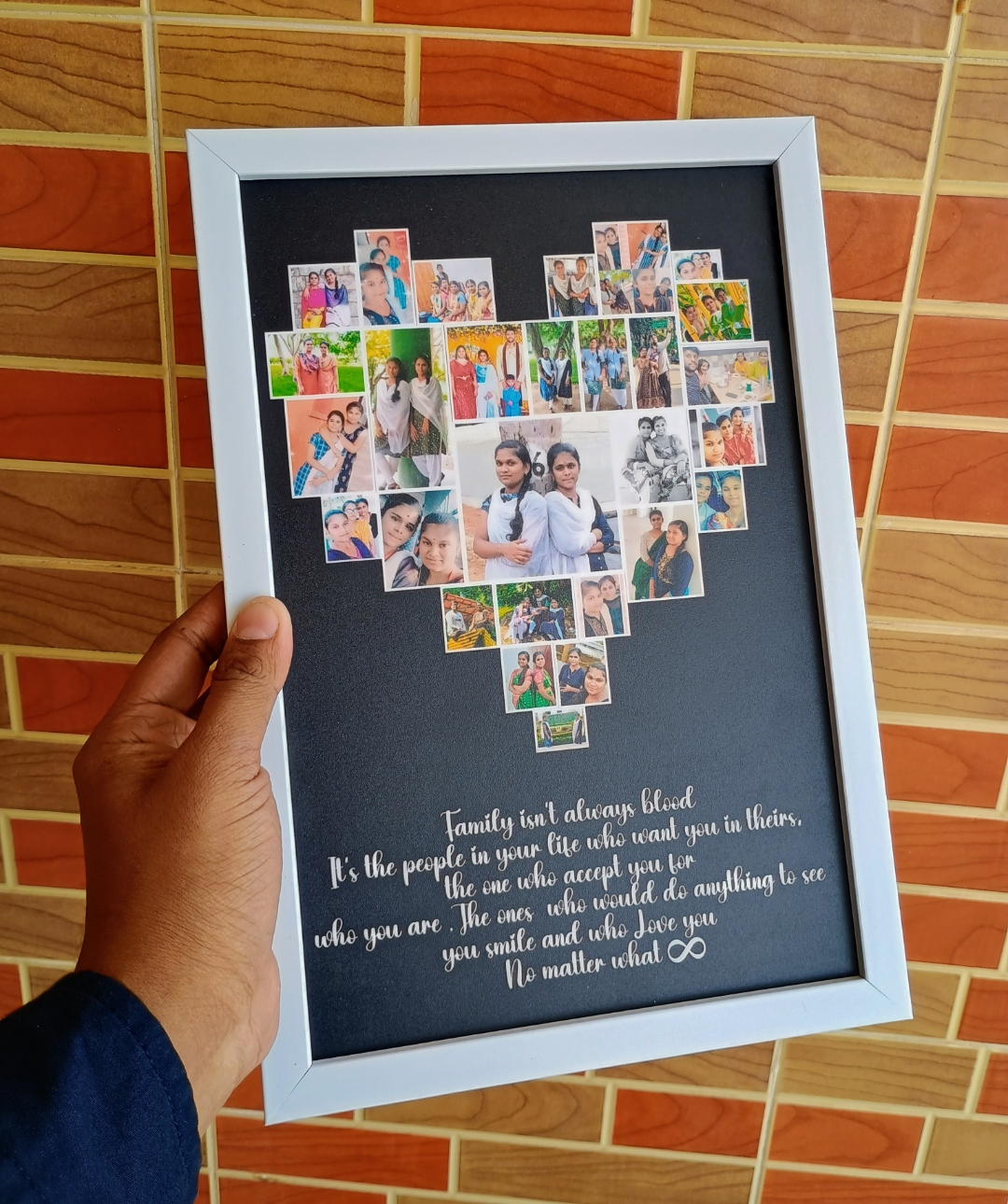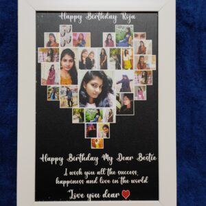 Celebrate your love and memories with our Heart Collage Photo Frame, beautifully designed with your favorite photos arranged in a heart shape and personalized text. A perfect keepsake to express emotions and create lasting memories for special occasions.