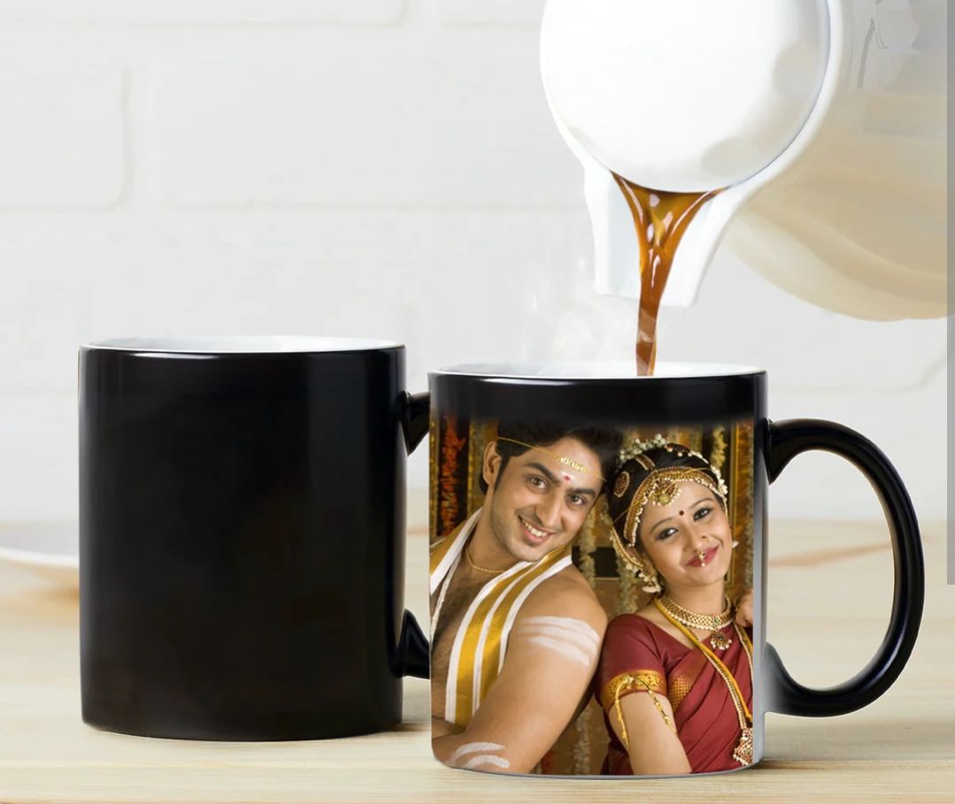 A personalized magic mug that hides your photo until warm drinks reveal it. A unique, playful gift for loved ones.