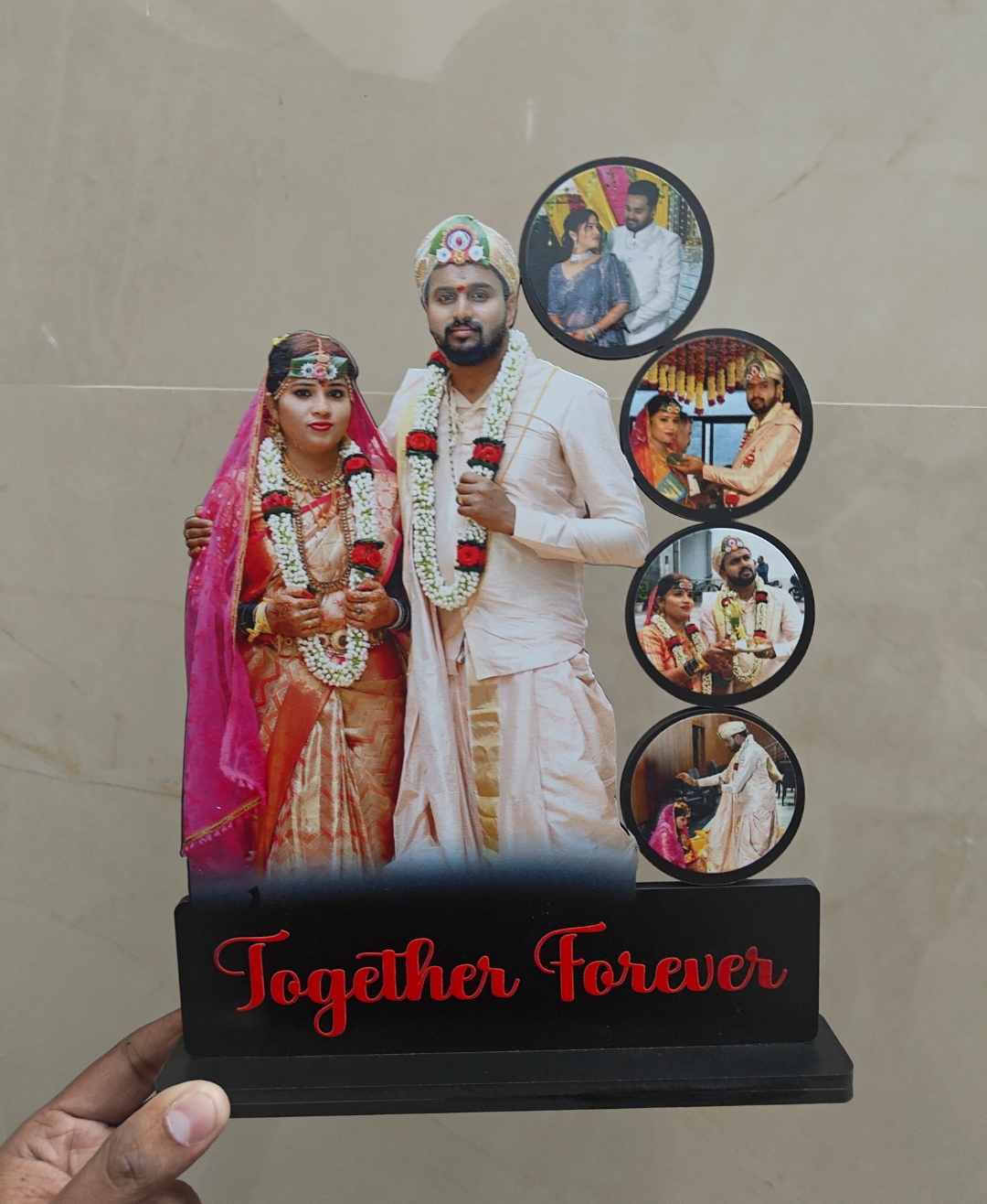Personalised 12 × 8 inch MDF photo cutout standy, perfect for displaying your favourite photos.