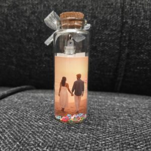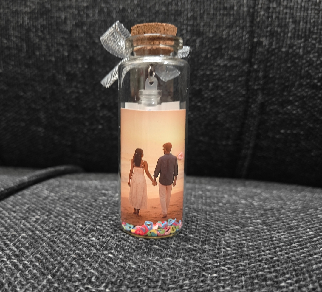 Adorable mini bottle featuring two personalised photos to cherish special memories.