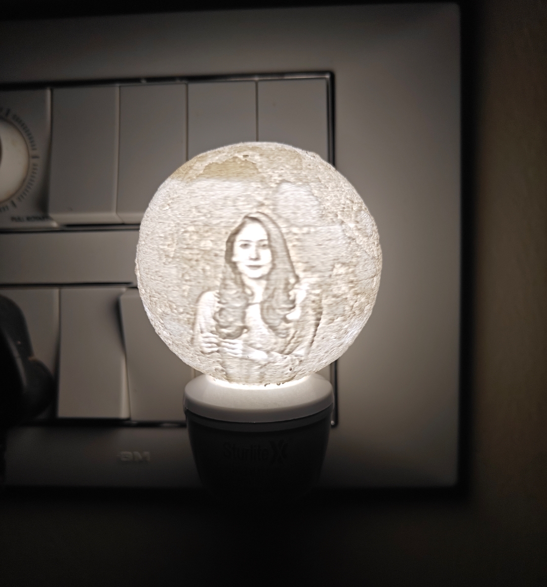 A custom 3D-printed moon lamp with your photo illuminated from within. A meaningful, romantic, and unforgettable gift for any occasion.