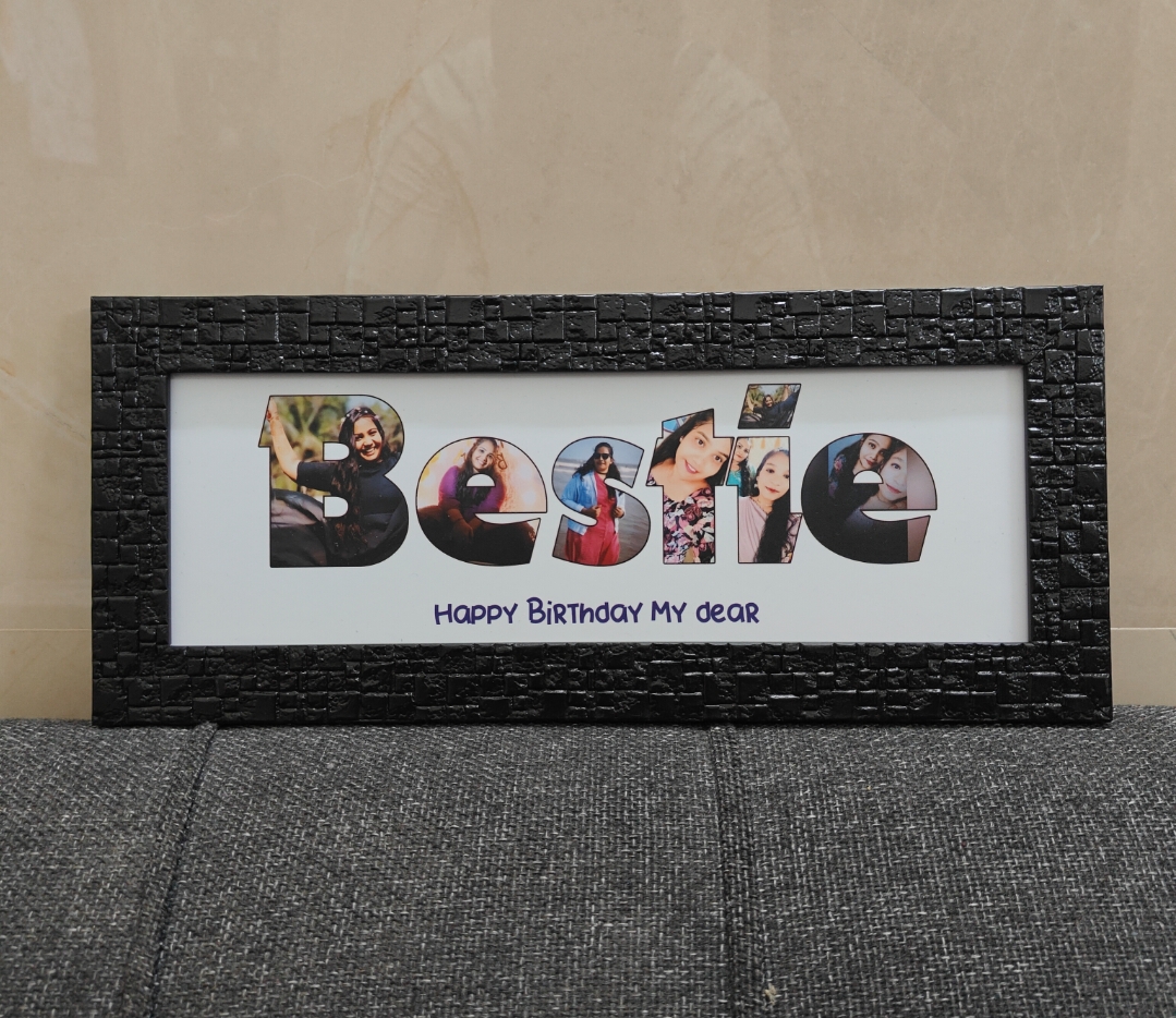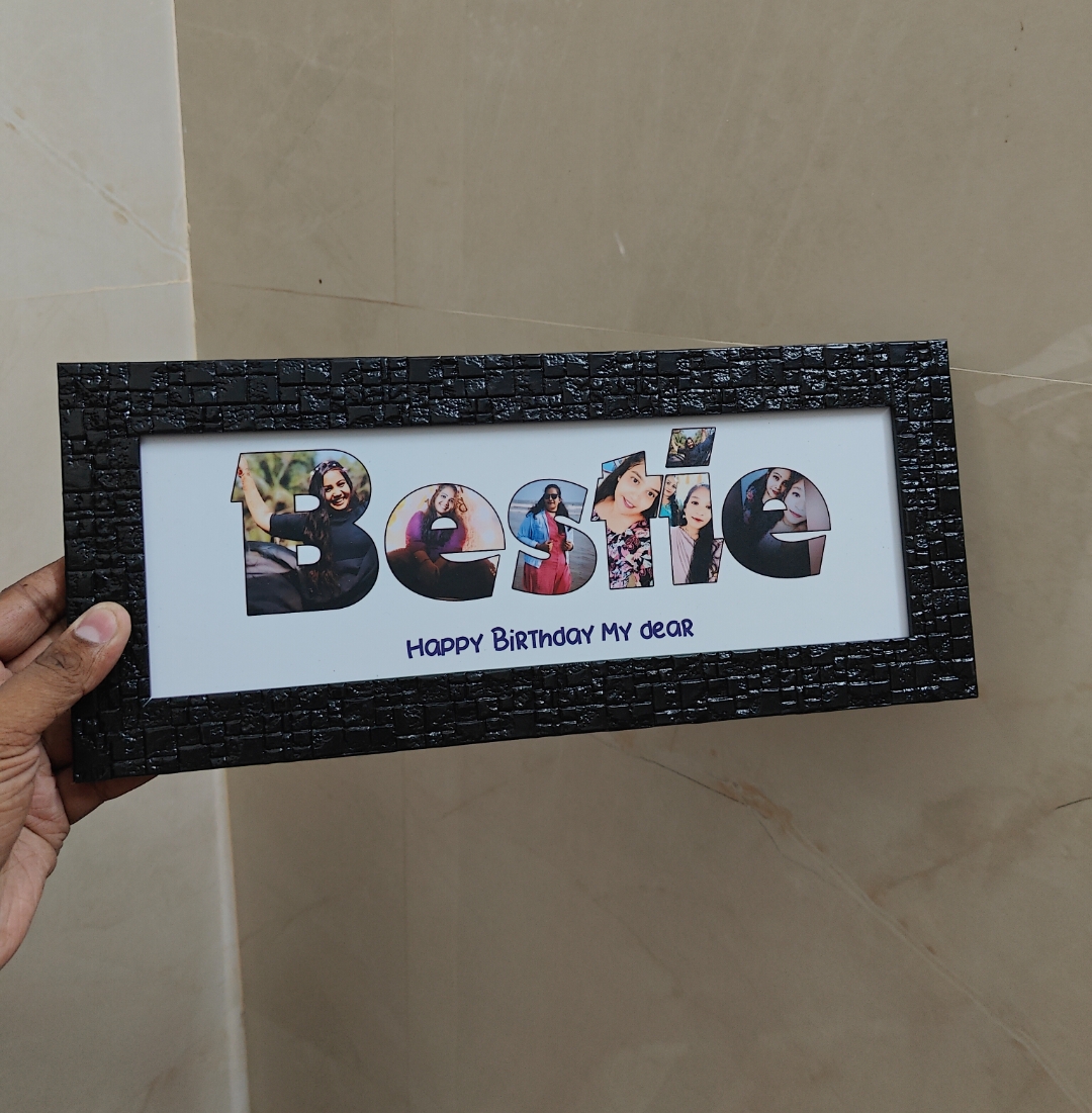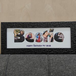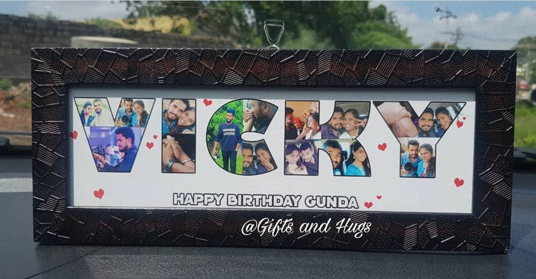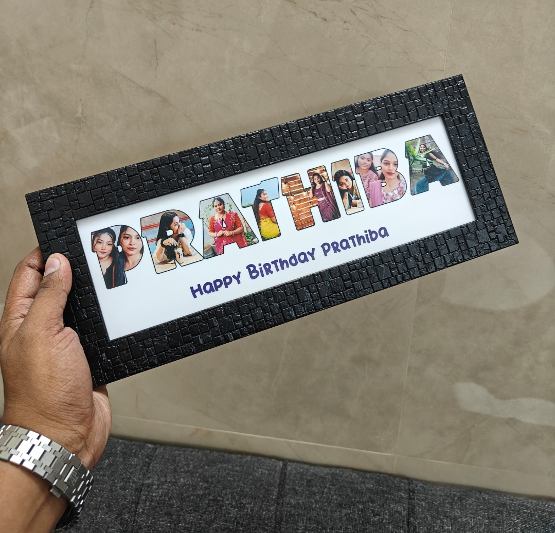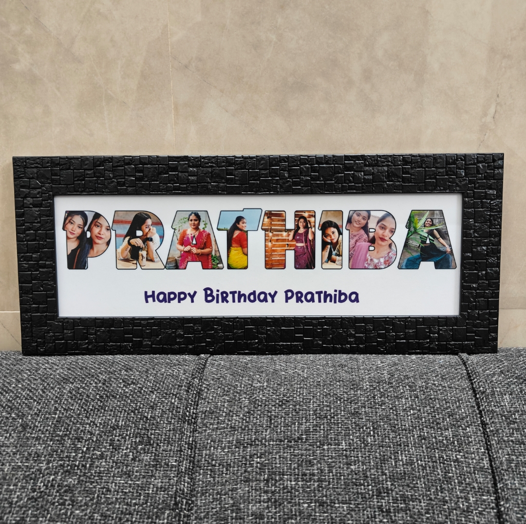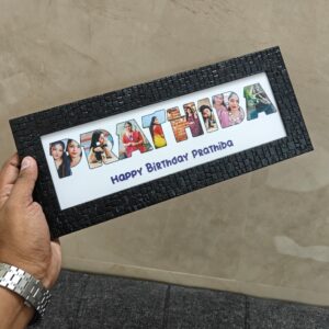 Personalized name photo frame in a sleek 13×5 inch size. Designed to highlight your name and photos in a stylish display. Perfect for gifting on birthdays, anniversaries, and special celebrations. Ideal décor for desks, shelves, and wall displays.