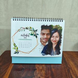Personalised table top calendar featuring 12 photos for all 12 months.